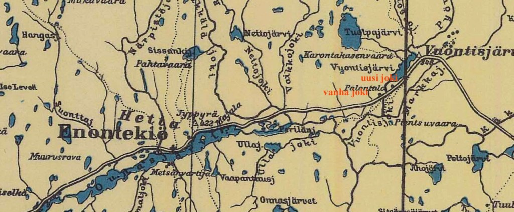 Kartalla näkyvä Vanhajoki yhtyy Ounasjokeen 4–5 km Hetasta itään paikassa, jossa Ounasjoki kääntää kulkusuuntansa kaakkoon. Rovan Nikun aikaansaama uusi Vuontisjoki yhtyy Ounasjokeen siitä pari kilometriä alavirran suuntaan.