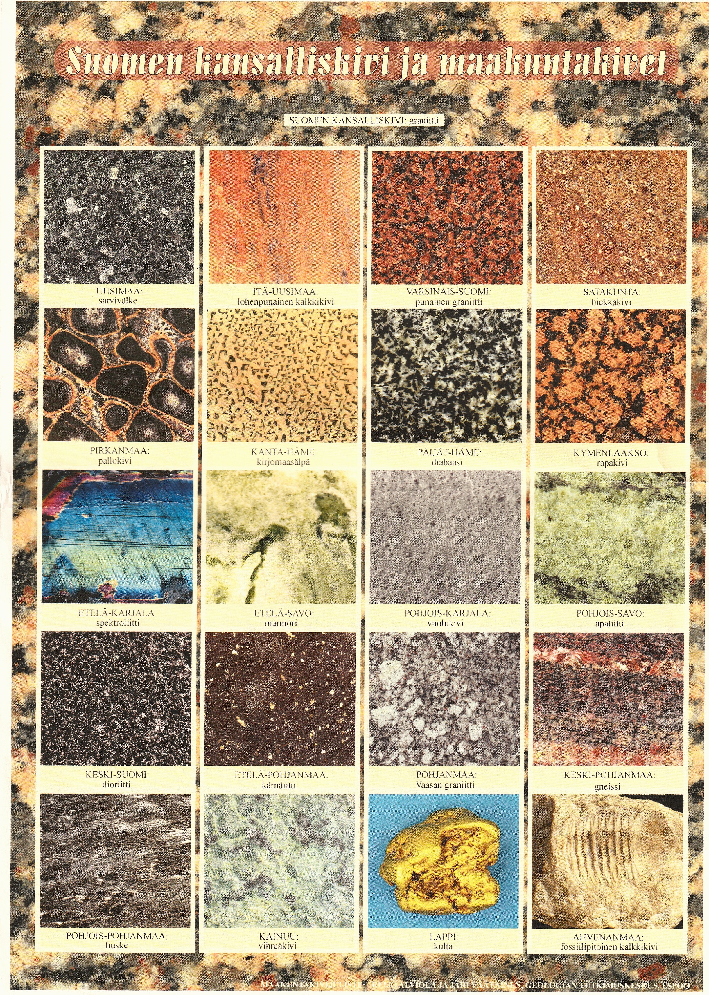 Maakuntakivet jpg Published 8.11.2025 at 2441 × 3426 in Maakuntakivet jpg Maakuntakivet ja muut Suomen luonto nimikot julisteena.